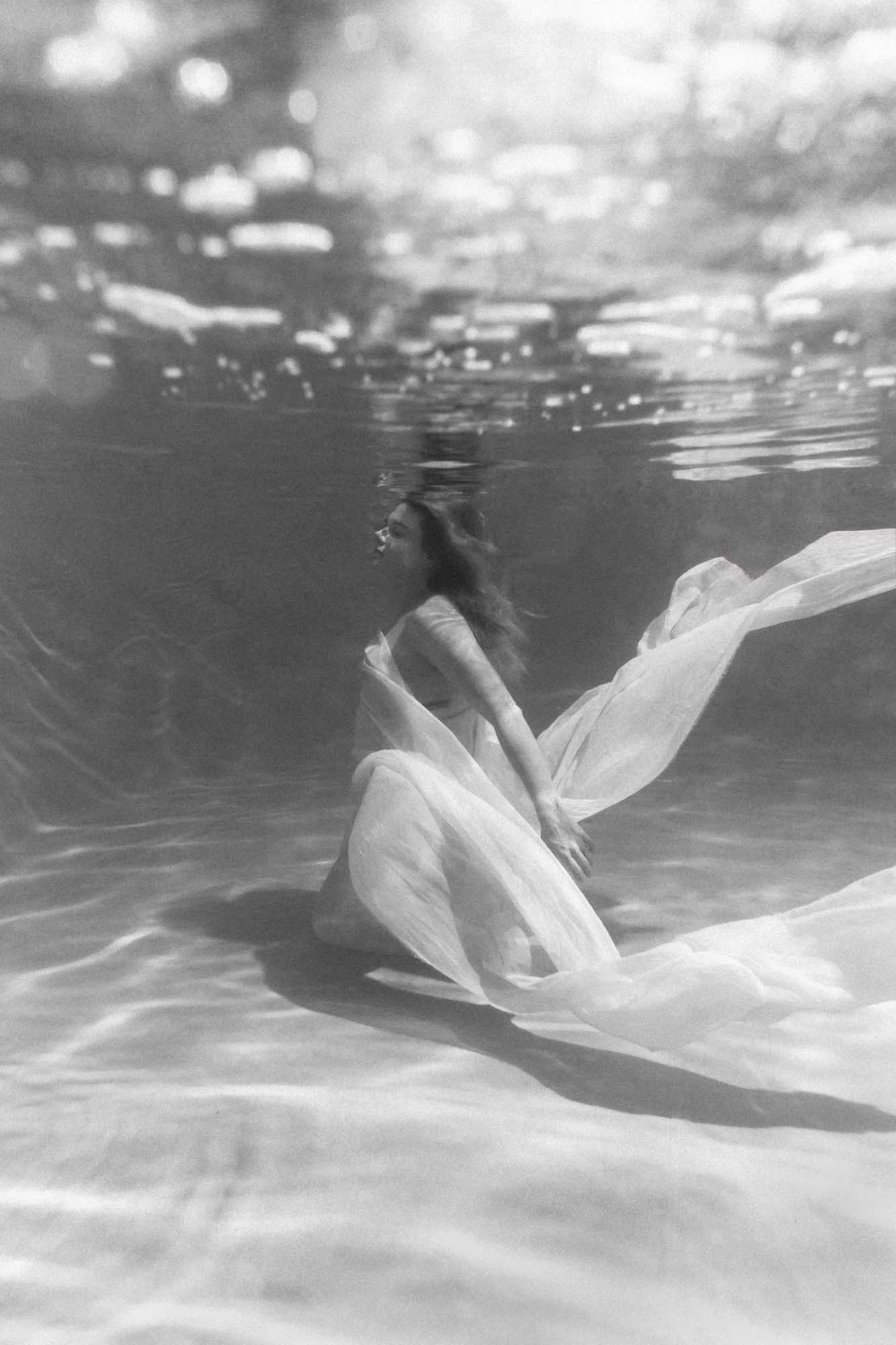 I always feel a lot of things when I am in the water. I decided to embark on this adventure to offer unusual, artistic images and to make this practice known. I like the idea of proposing an original project, building it with you and living each time an enriching adventure… let’s push the limits of creativity! It is really extraordinary for me to be able to create such beautiful images for you for a unique and magical aesthetic... to be in this state and to reconnect with your physical sensations. I like to create unique pictures for each of you. Because it is simply art, of which you are the subject. To be able to offer you such an experience fills me with joy.